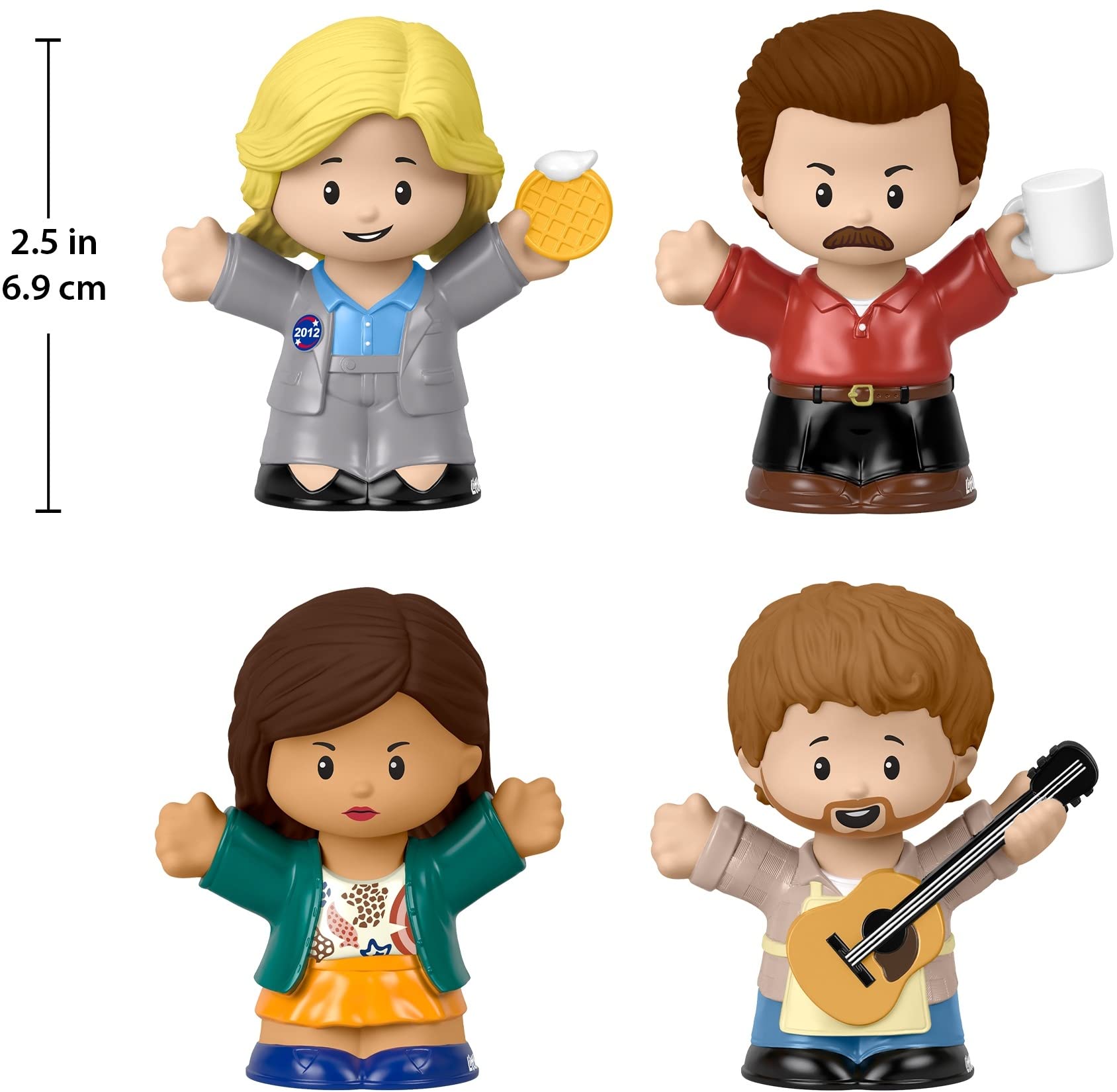 - Includes 4 characters from the show: Leslie Knope, Ron Swanson, April Ludgate, and Andy Dwyer